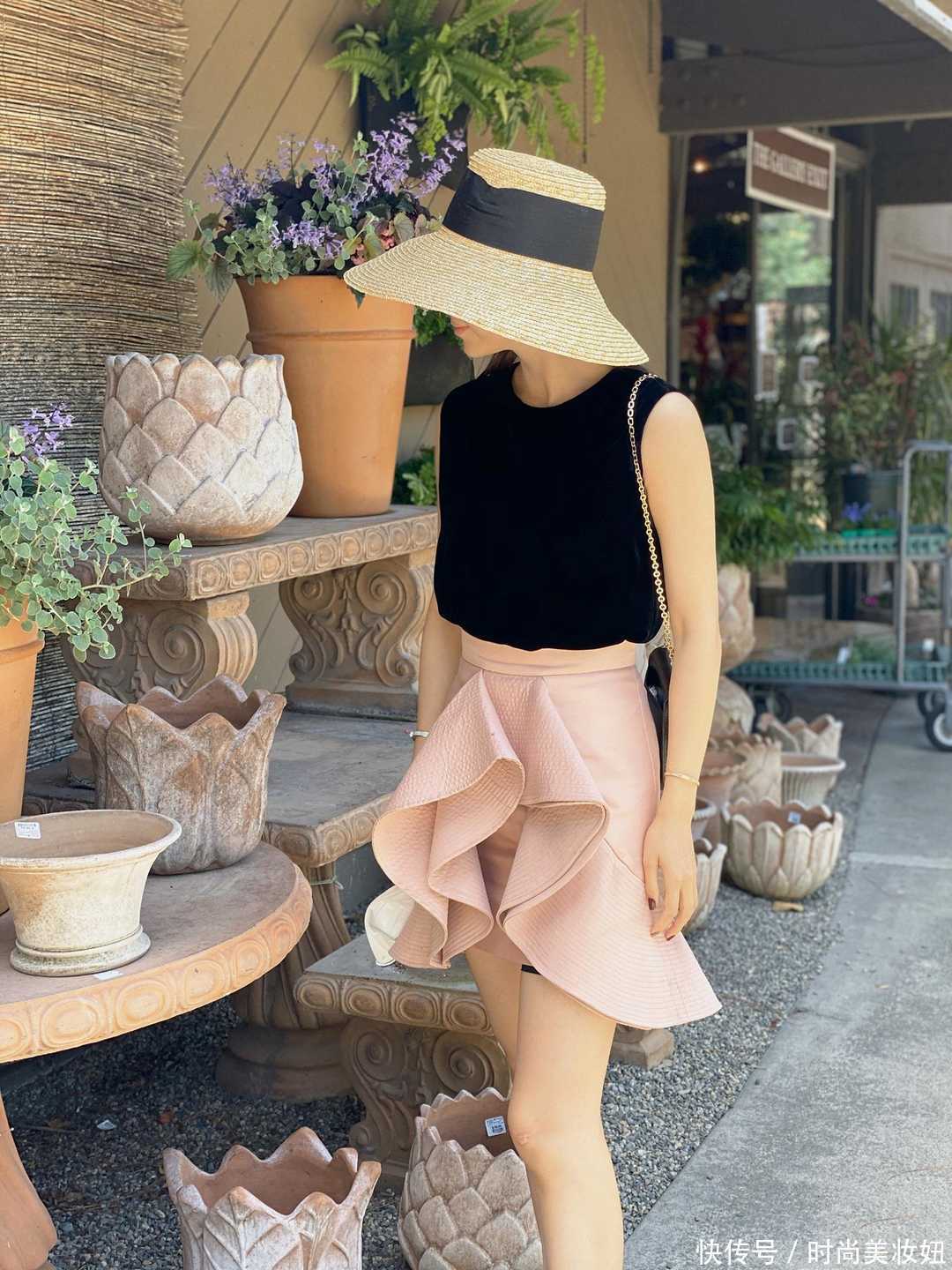 无袖盘算的上衣因为会失败了暴表露肩部,因此可能会给东谈主一种膀大腰圆的既视感。选拔玄色的布料,则大要通过形势的上风很好地修饰手臂处的线条,让有拜拜肉的女生也不错很好的尝试有这种盘算的衣饰。